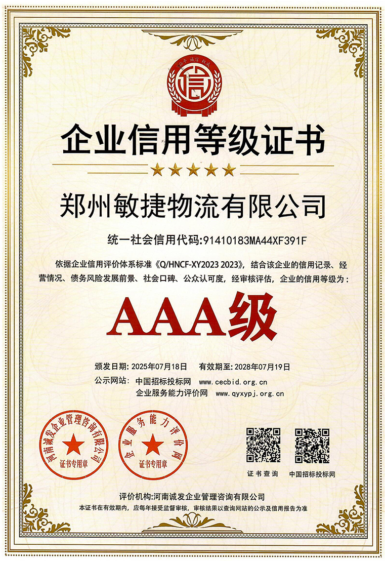 AAA级信用企业证书
